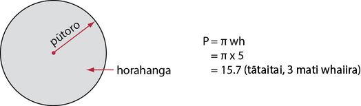 Whakareatia te whitianga o te porowhita ki te pae (π), ka hua ko te paenga o te porowhita.