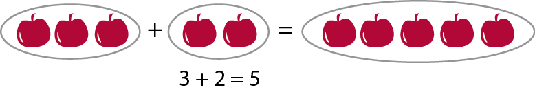 E rua ngā huinga āporo e honoa ana i konei, ko te 3 + 2 = 5 te tāpiritanga e hāngai ana: