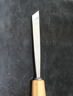 A hand tool, mainly used to shape and carve timber. One end has a sharp blade for cutting the wood which is made from steel. One end has a handle. The head of the handle is struck with a mallet in order to push the blade of the chisel forward in the wood.